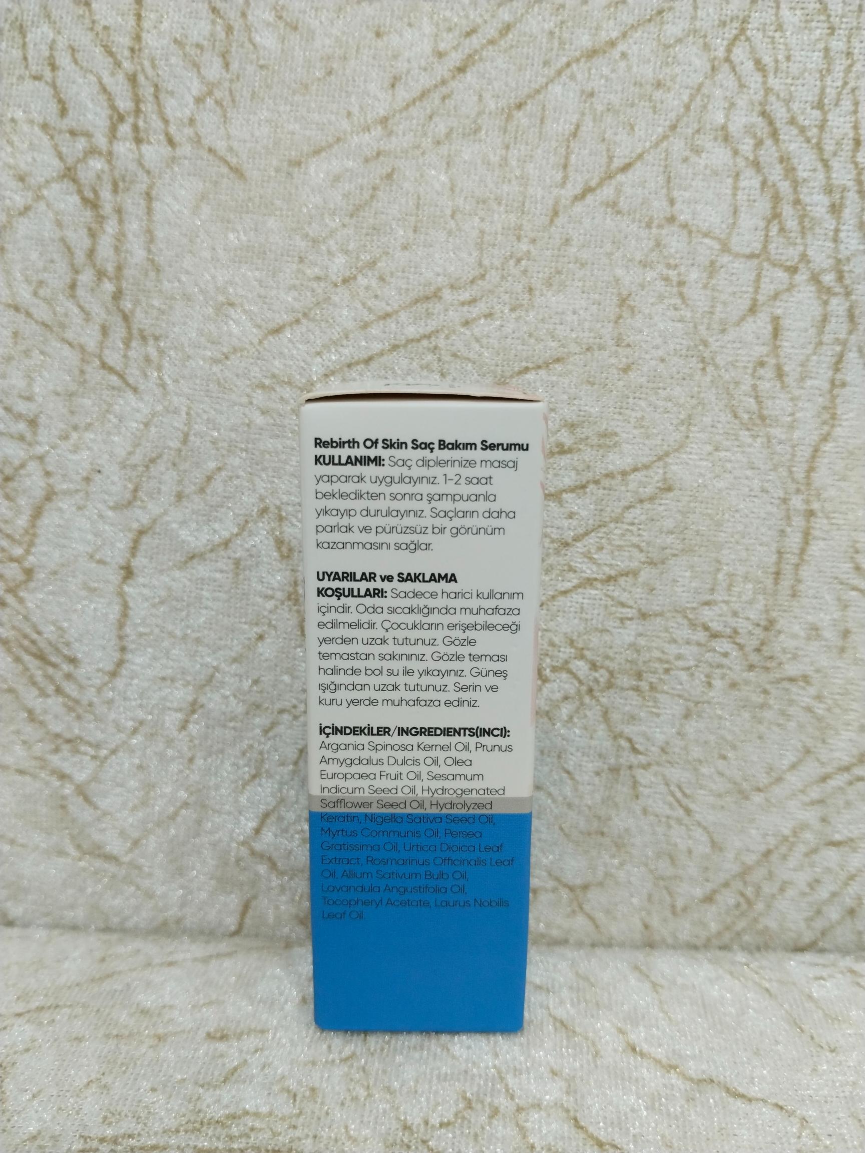 Doğal ve etkili içerikleriyle saç bakımında devrim yaratan Rebirth Of Skin Saç Bakım Serumu, saçlarınıza hak ettiği şefkati ve bakımı sunar. Eğer siz de saç dökülmesi yaşıyor veya saç sağlığınızı korumak istiyorsanız, bu serum tam size göre. Her gün yeni bir başlangıç yapmanın; sağlıklı ve güçlü saçlarla mümkün olduğunu unutmayın.